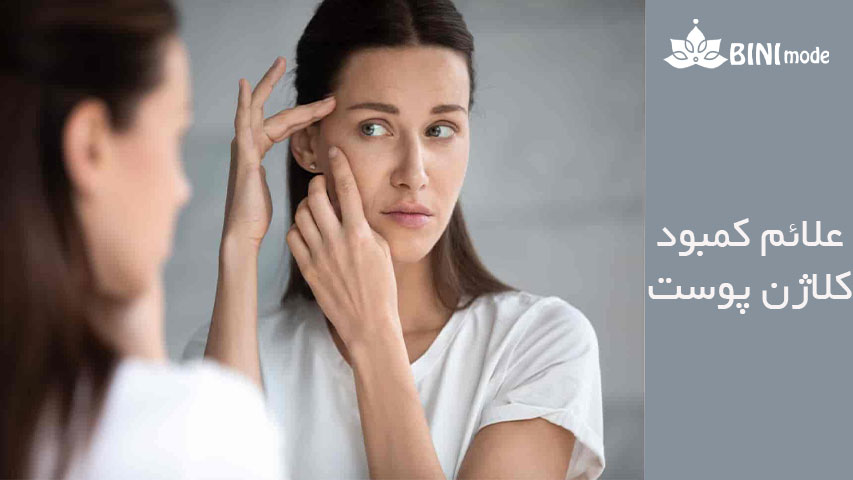یکی از اولین علائم کمبود کلاژن، کاهش سفتی پوست بهویژه در ناحیه گونهها، خط فک و اطراف چشم است. پوست بهمرور حالت افتادهتری پیدا میکند.